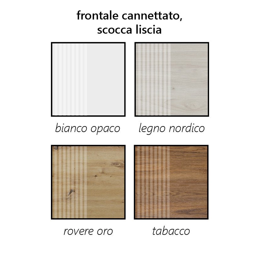 Umkehrbare Wandkolonne mit zwei Türen. Modell Trio Rillenform. Abmessungen: Länge 31,4 cm; Höhe 130 cm; Tiefe 31,5 cm. Material: MDF.