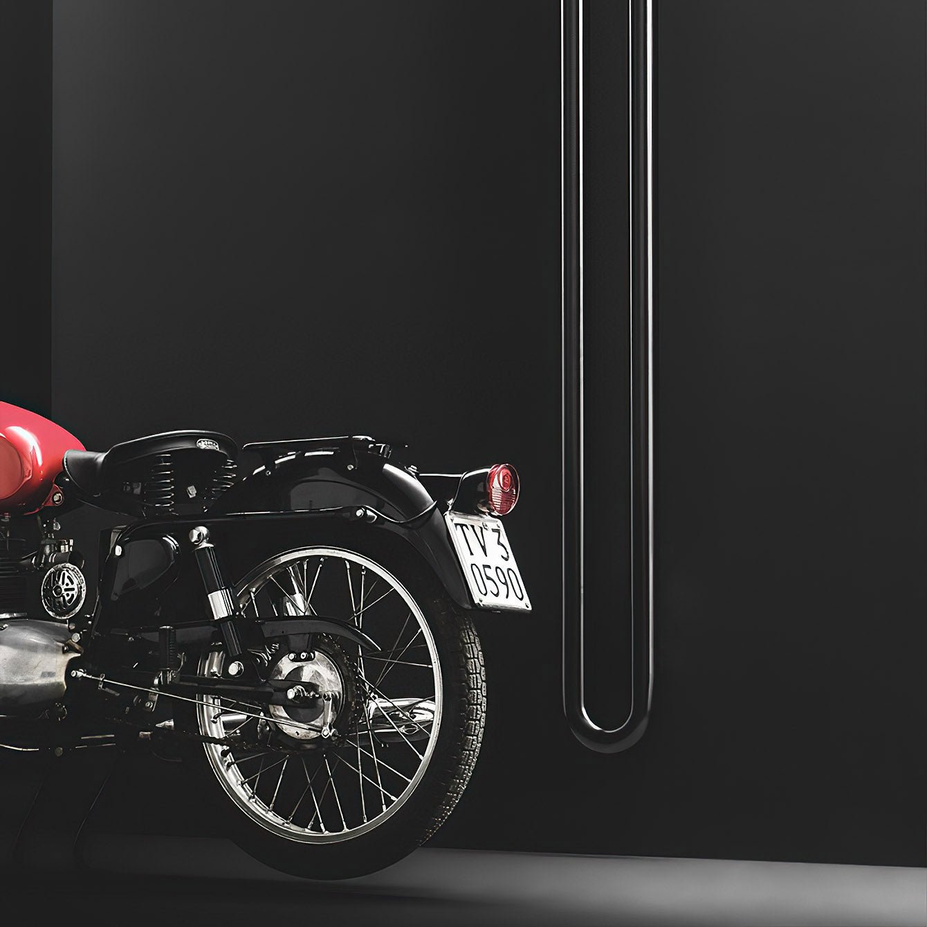 Es gibt eine neue Entwicklung. Der Design-Wandheizkörper Tubone hat eine einfache, lineare Form. Die Proportionen sind besonders wichtig. Der ovale Ring aus Rundrohr hat zwei Kurven von je 180 Grad.