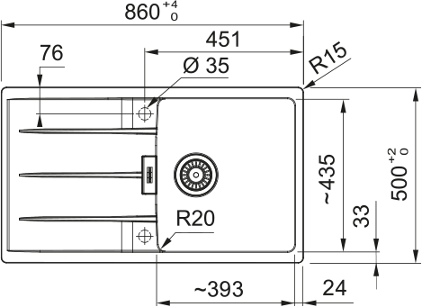 Centro, CNG 611-86, Obeneinbau, Fragranite, Schiefergrau, Drehknopfventil, Tropfteil Reversibel