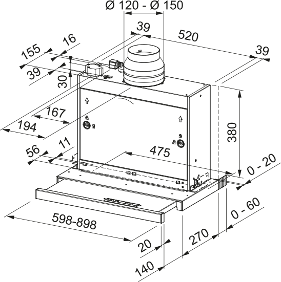 Einbauhaube, OMNIA, FTCO 60 XS Edelstahl 315.0599.933