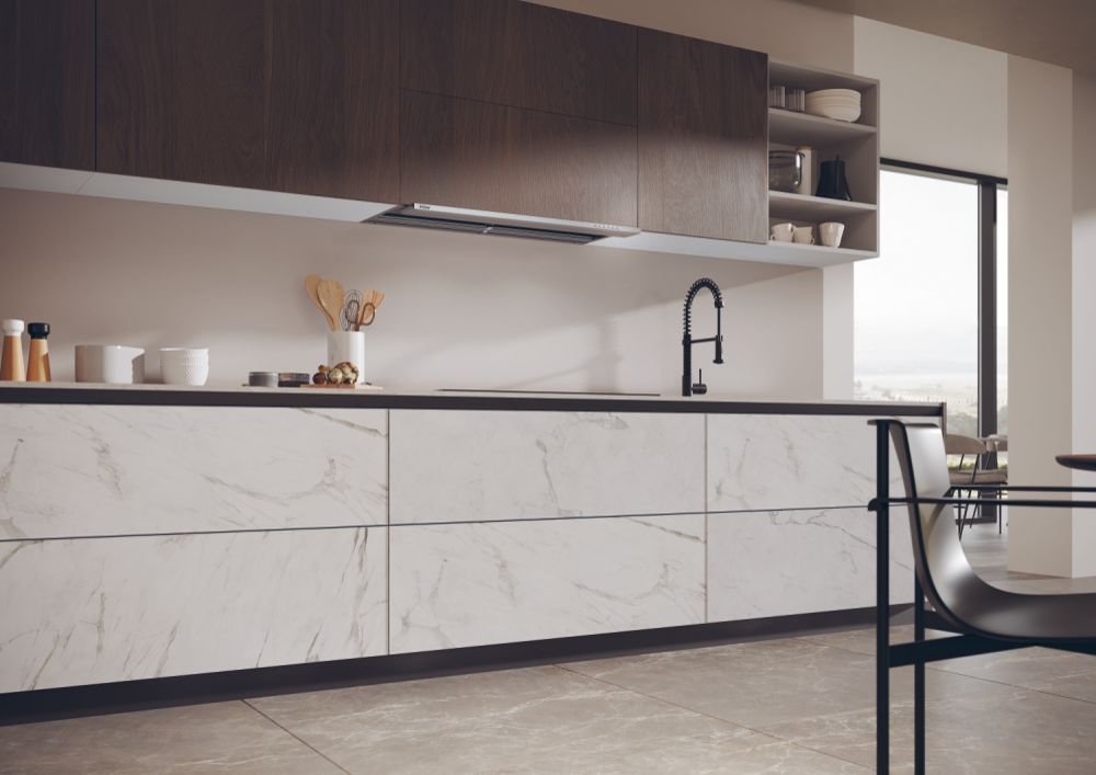 • Kopffrei-Dunstabzugshaube zur Wandmontage 90 cm breit
