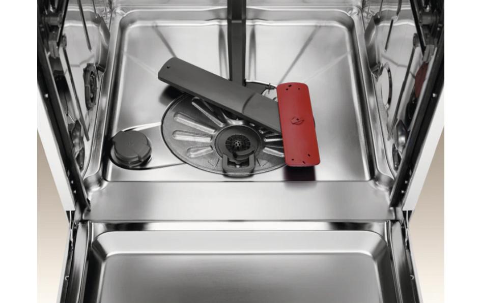 Dank des ausgeklügelten Rotationsprinzips des Sattelitensprüharms erreicht das Wasser jeden Winkel und jedes Objekt im Geschirrspüler. Die optimale Wasserverteilung im Spülraum sorgt selbst bei dicht eingeräumtem Geschirr für eine gründliche Reinigung.