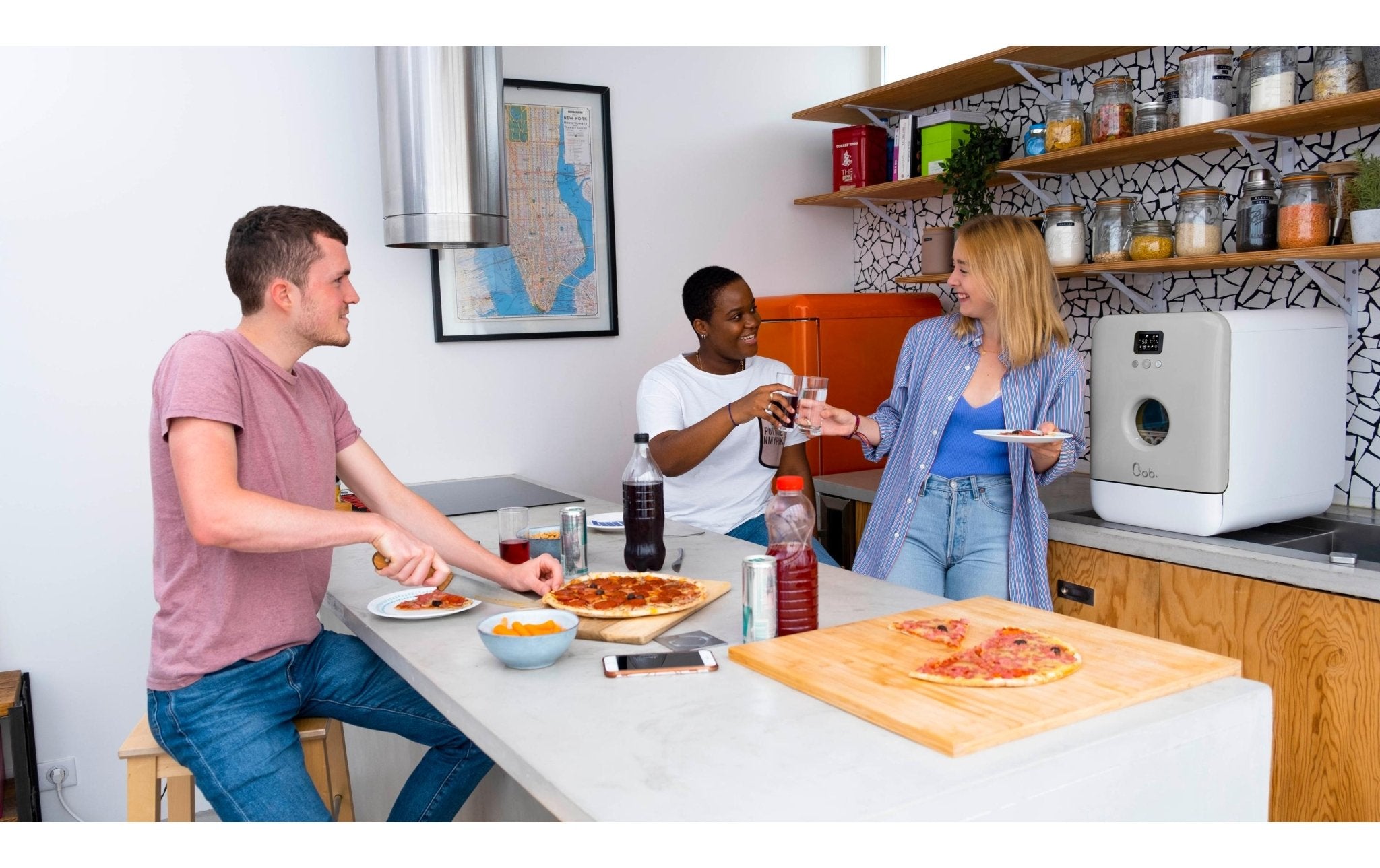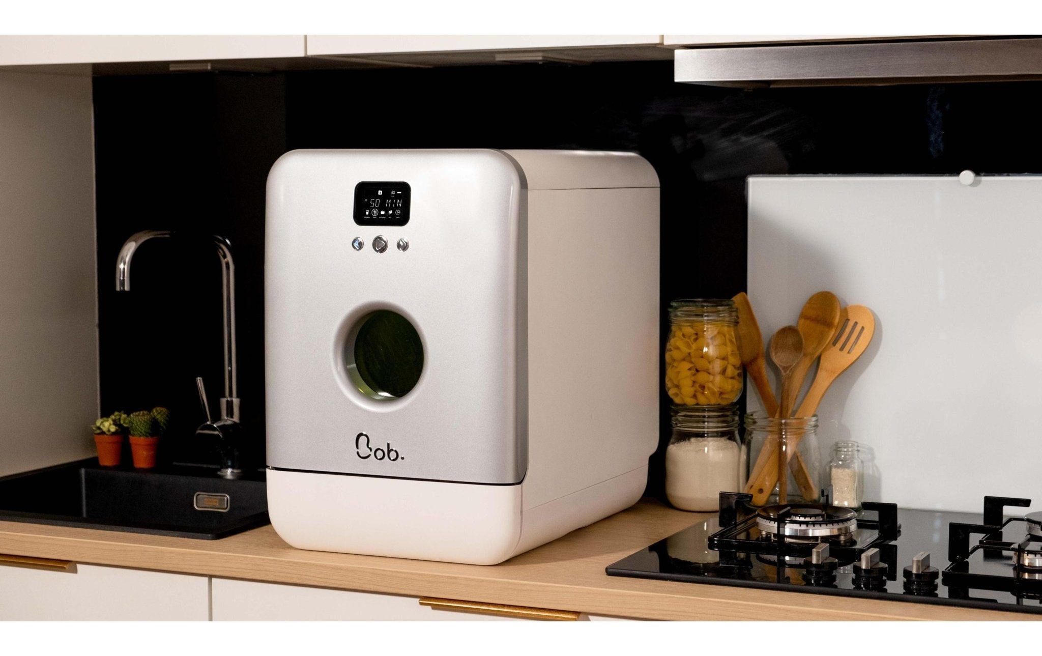 Bob, der praktische Geschirrspüler, bietet zwei Optionen der Wasserzufuhr. Entscheiden Sie sich entweder dafür, ihn wie einen herkömmlichen Geschirrspüler an einen Wasseranschluss anzuschliessen oder nutzen Sie den integrierten Wassertank, der Bob unabhängig von einem Wasseranschluss macht. Der Wassertank, ähnlich einer Kaffeemaschine, wird an der Vorderseite befüllt. Dadurch können Sie Bob entweder integrieren oder unter einer Spüle platzieren. Die Entleerung des Schmutzwassers erfolgt mithilfe einer Ablaufpumpe und eines Schlauchs. Sie können den Schlauch direkt in die Spüle, einen Eimer, Kanister oder Abwasserauslass legen. Beachten Sie dabei, dass die maximale Entleerungshöhe 1.20 m beträgt. Mit nur 2.9 Litern pro Express-Zyklus verbraucht Bob deutlich weniger Wasser als beim manuellen Spülen von Hand (15 Liter für die gleiche Menge Geschirr).