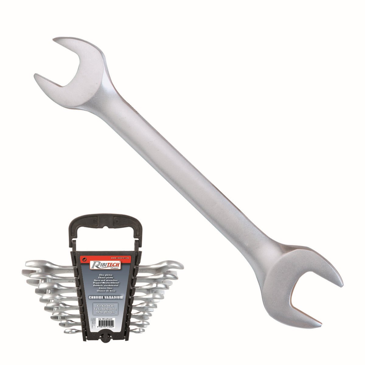 Aus geschmiedetem Chrom-Vanadium-Stahl mit satinierter Oberfläche. Geliefert mit Kunststoffkoffer zur Aufbewahrung. Set von 8 Schlüsseln Durchmesser 6x7 - 8x9 - 10x11 - 12x13 - 14x15 - 16x17 - 18x19 - 20x22
