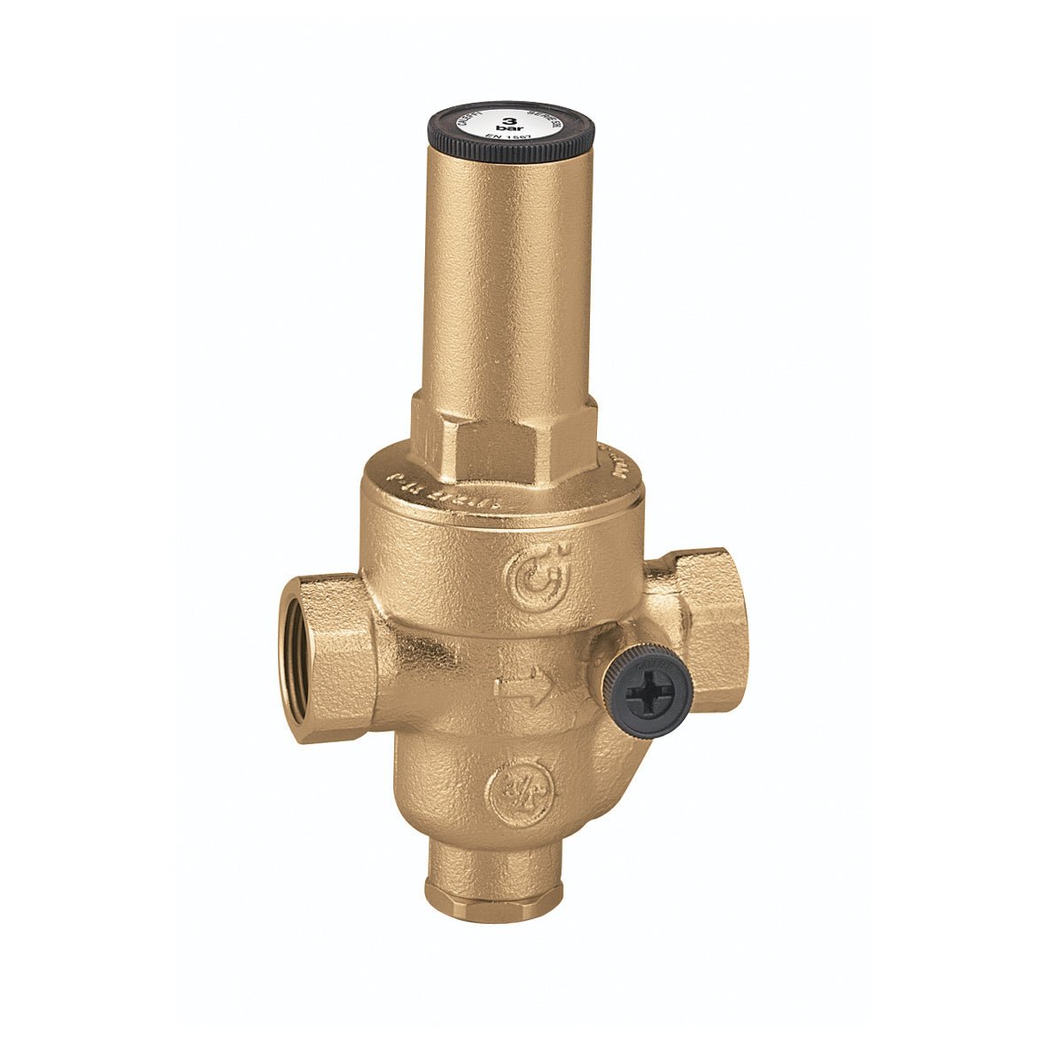 Druckminderer mit herausnehmbarer Kartusche. Gehäuse aus zinkbeständiger Legierung. Weibliche Anschlüsse - weiblich. Max. Druck stromaufwärts: 25 bar. Einstelldruck stromabwärts: von 0,5 bis 6 bar. Max. Betriebstemperatur: 80°C.