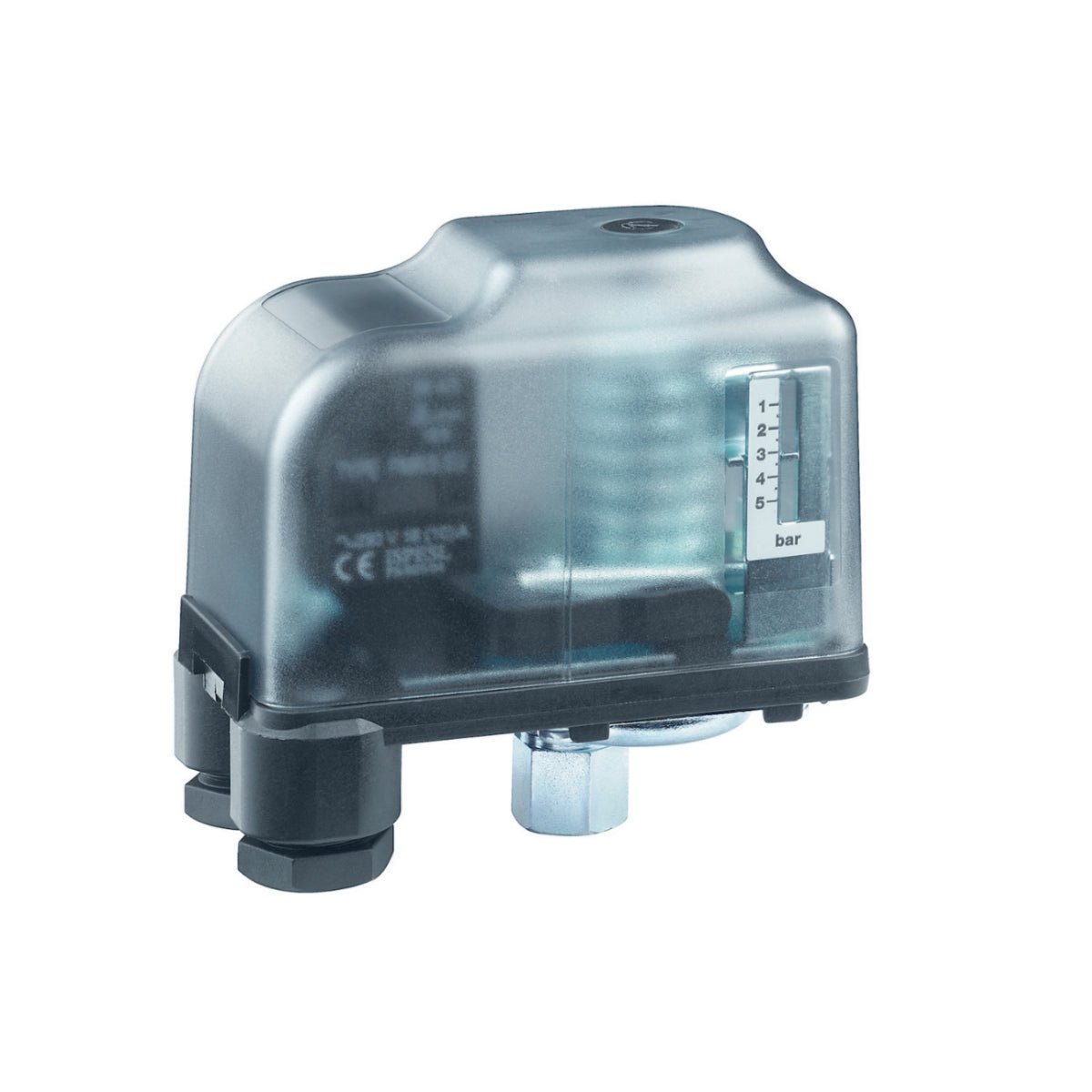Manuelles Rücksetzen, 250 V - 16(10) A. Max. Betriebsdruck: 1 - 5 bar; Anschluss 1/4" weiblich. Schutzart: IP 44.