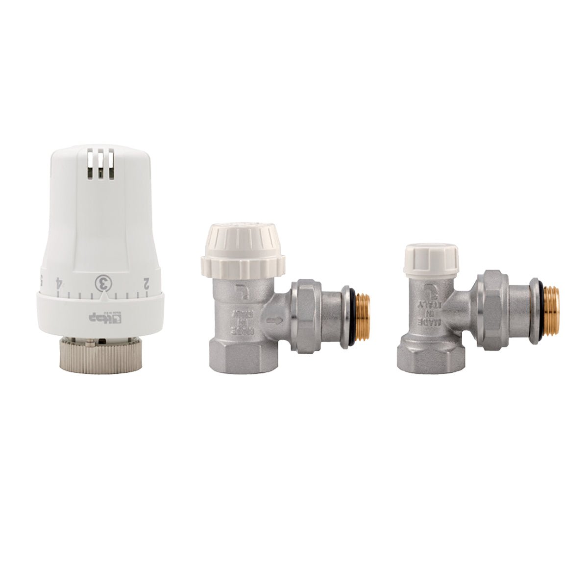 Kit bestehend aus: Thermostatsteuerung mit ölsensitivem Element 891R, Regelbereich 0°-28°C. Thermostatventil mit Winkelanschluss für weiblichen Anschluss 994C. Winkelregler für weiblichen Anschluss 396S
