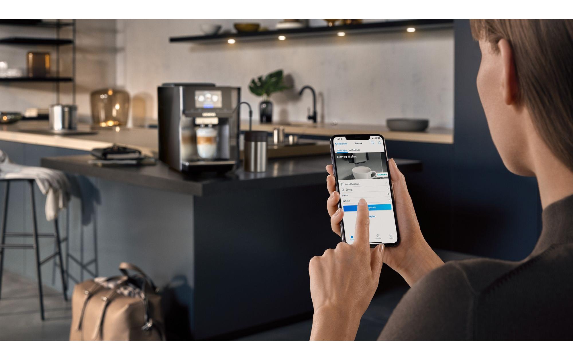 Mit «Home Connect» ist es Ihnen möglich, den Kaffeevollautomaten in Ihrer Küche von überallher zu steuern. Bestellen Sie sich gemütlich vom Sofa aus Ihren Lieblingskaffee. Oder lassen Sie sich am Morgen noch im Bett Ihren Kaffee zubereiten, damit Sie Ihn gleich geniessen können, wenn Sie in die Küche gehen. Wenn Sie Gäste zu Hause haben, können Sie eine «Playlist» mit verschiedenen Kaffees erstellen, die dann so zubereitet werden, dass Sie sie nur noch zu verteilen brauchen. Sie haben dabei die Wahl aus einer Vielzahl klassischer Kaffeespezialitäten sowie weiterer Kaffeekompositionen aus der ganzen Welt. Mit der «Home Connect» App werden Sie zur Kaffee-Expertin oder zum Kaffee-Experten! Holen Sie sich Ihr Know-how direkt aus der App, etwa zu den verschiedenen Kaffeesorten und ihrer Herkunft. Auch der Service wird mit «Home Connect» vereinfacht. Rufen Sie einfach die Hotline an und lassen Sie eine Ferndiagnose durchführen. Der Kundendienst greift – natürlich nur mit Ihrer Erlaubnis – auf Ihren Kaffeevollautomaten zu und kann auf diese Weise im Idealfall die Ursachen allfälliger Probleme ermitteln und konkrete Lösungsansätze anbieten, mit denen Sie Ihre Kaffeemaschine ohne grossen Aufwand reparieren.