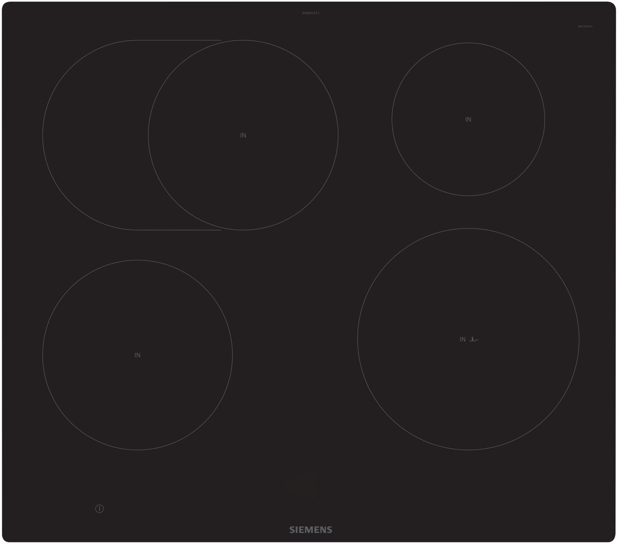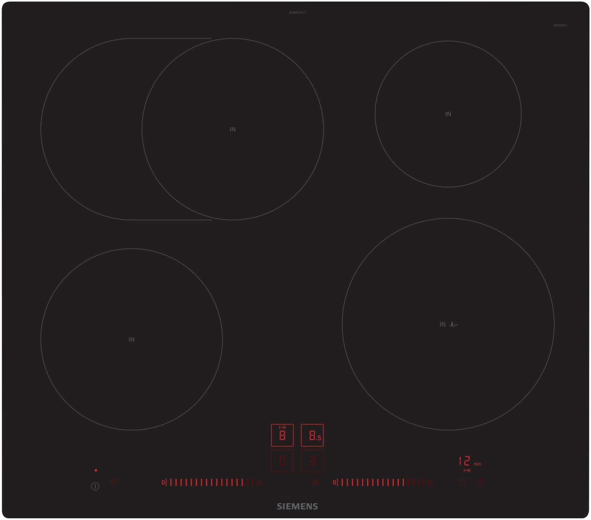 Kochzonen: 1 x Ø 180 mm, 1.8 kW (max. Powerstufe 3.1 kW) Induktion; 1 x Ø 280 mm, 1.8 kW (max. Powerstufe 3.1 kW) Induktion; 1 x Ø 145 mm, 1.4 kW (max. Powerstufe 2.2 kW) Induktion;1 x Ø 210 mm, 2.2 kW (max. Powerstufe 3.7 kW) Induktion