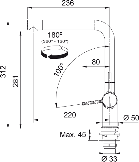 Active L Twist Schwenkauslauf, Hochdruck, Edelstahl-Optik, 180° Schwenkbereich, Seiten bedient, 8.3l/min.