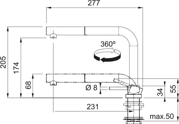 Länge des Wasserschlauchs |