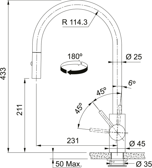 Eos Neo Auszugsbrause, Hochdruck, Gold, 180° Schwenkbereich, Seiten bedient, 12l/min.