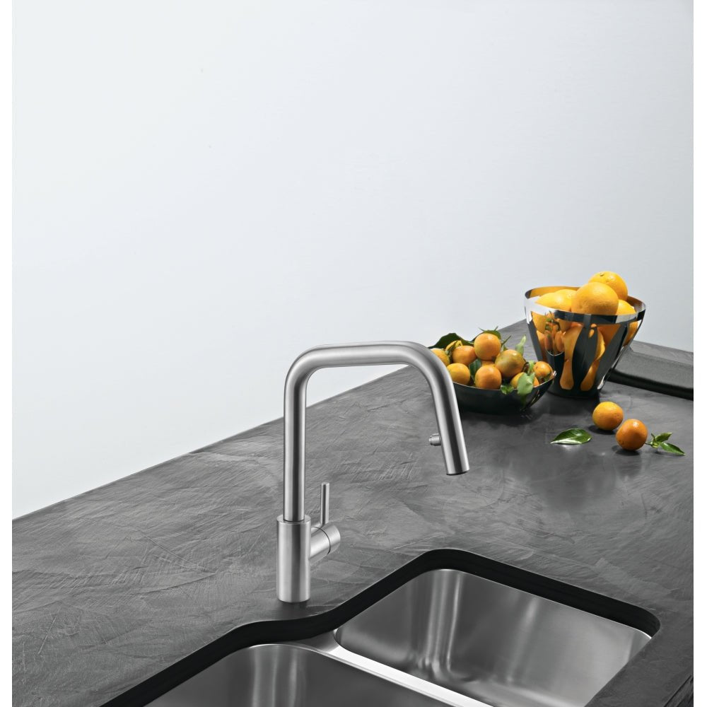 Armatur, Kubus , Auszugsbrause, Edelstahl , Durchflussleistung: 8,3 l/Min., Energieklasse: A, Geräuschklasse: I