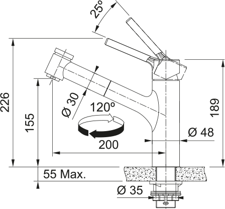 Durchmesser Armaturenloch 35 mm
