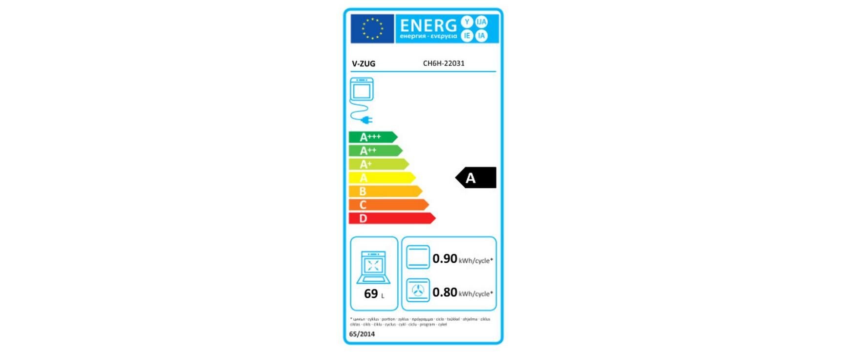V-ZUG Herd Combair V600 6UH, Breitennorm: 60 cm, Höhennorm: 60 cm, Glas Nero, Griff: Nero, Drehschalter, V-ZUG-Home, Anzahl bedienbare Kochzonen: 4, 400 V