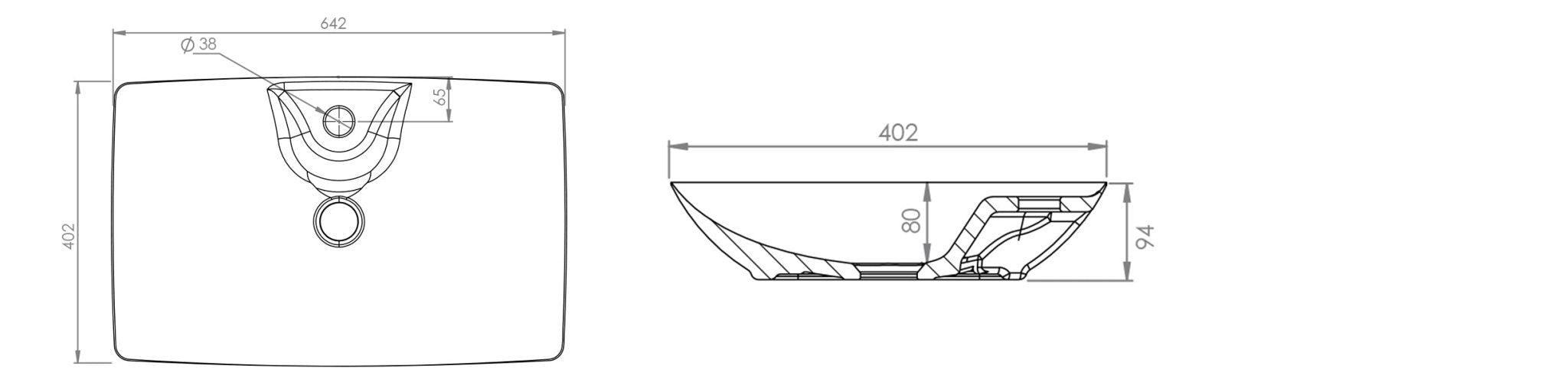 Keramikwaschbecken ohne Überlauf, mit Hahnloch. Aufsatzmontage. Ablaufventil nicht enthalten. Höhe 9,5 cm. Farbe Weiss.