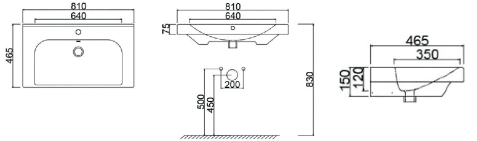 Keramikkonsole mit Überlauf. Ablaufgarnitur nicht enthalten. Farbe Weiss. Kann schwebend installiert werden.