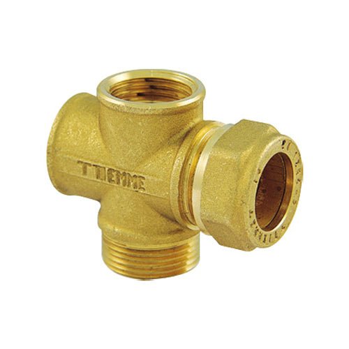 Anschluss für Solaranlagen. Kreuzanschluss mit Mutter und Hülse für Kupferrohr. Aussengewinde mit flacher Dichtfläche für gewelltes Stahlrohr