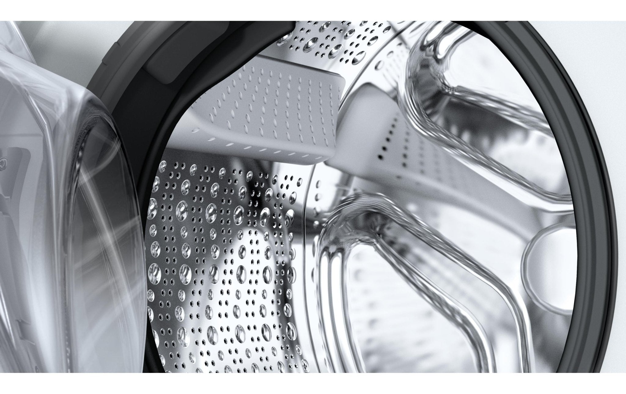 Die ausgeklügelte 3D-Sensorik sorgt dafür, dass je nach Beladungsmenge und Textilart immer die optimale Wassermenge in die Waschtrommel kommt. Die intelligenten Sensoren erkennen, ob es sich bei den Textilien um Baumwolle, Synthetik oder einen Mix handelt, und messen die Menge der Ladung in 256 Abstufungen. Aus diesen beiden Faktoren leitet das Gerät schliesslich automatisch die erforderliche Wassermenge ab. So erzielen Sie dank «waterPerfect Plus» jederzeit ein perfektes Ergebnis bei minimalem Wasserverbrauch.