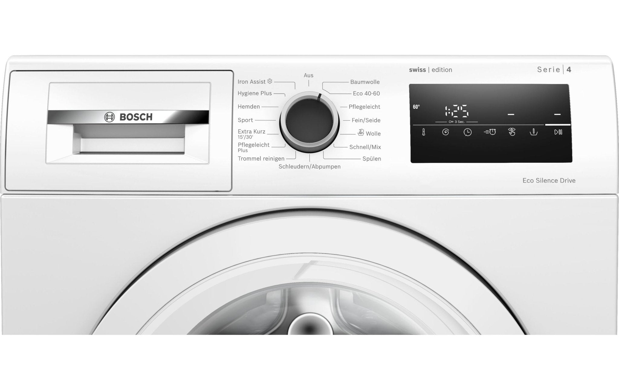Waschmaschine mit «Iron Assist» für weniger Bügelaufwand und langlebigem «EcoSilence Drive» Motor.