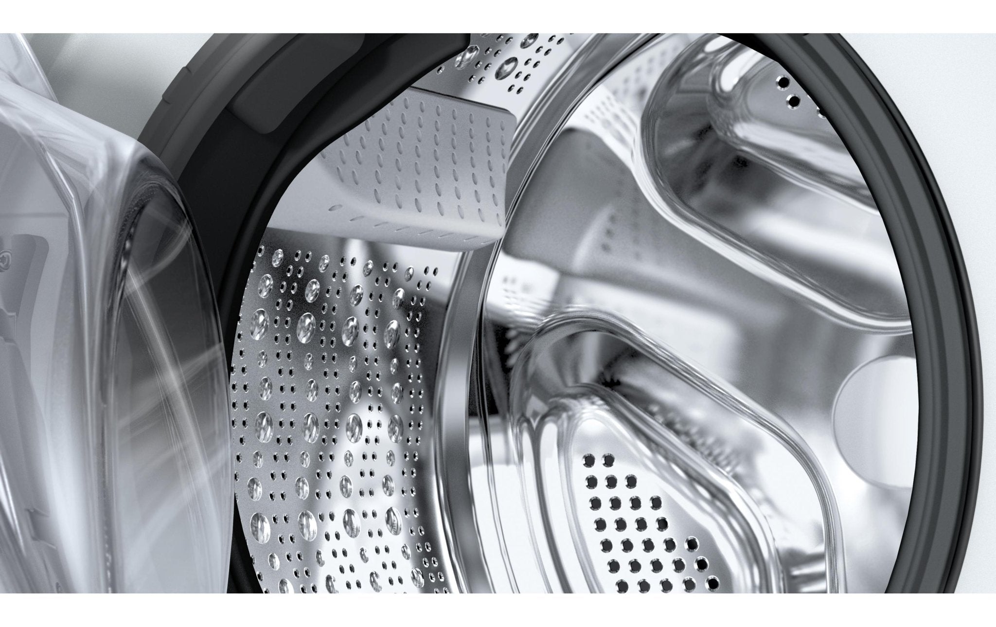 • Funktionen: Innenbeleuchtung, Kindersicherung, Nachlegefunktion, Schaumerkennung, Unwuchtkontrolle, Wasserschutzsystem, WLAN-Verbindung, Zeitprogramm