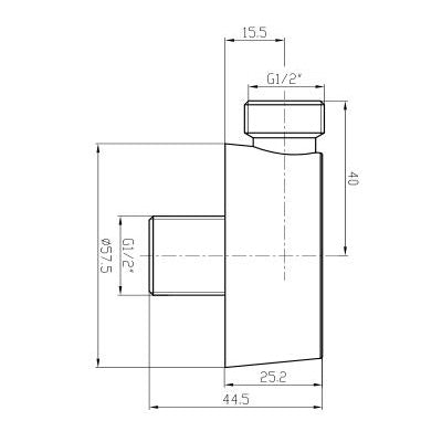 Flacher runder Wasseranschluss. Durchm. 57,5 mm. Anschlüsse 1/2" M. Verfügbar in Chrom- und mattschwarzen Ausführungen