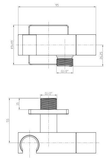 Eckiger Wasseranschluss, komplett mit Duschhalterung und Stopp. Anschlüsse 1/2" M. Verfügbar in Chrom- und mattschwarzen Ausführungen