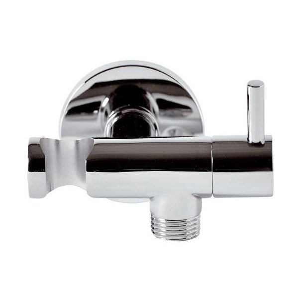 Minimal-Serie Absperrventil mit verchromter Messing-Duschhalterung, für Flexschlauch mit konischem Anschluss. Wandanschluss G 1/2