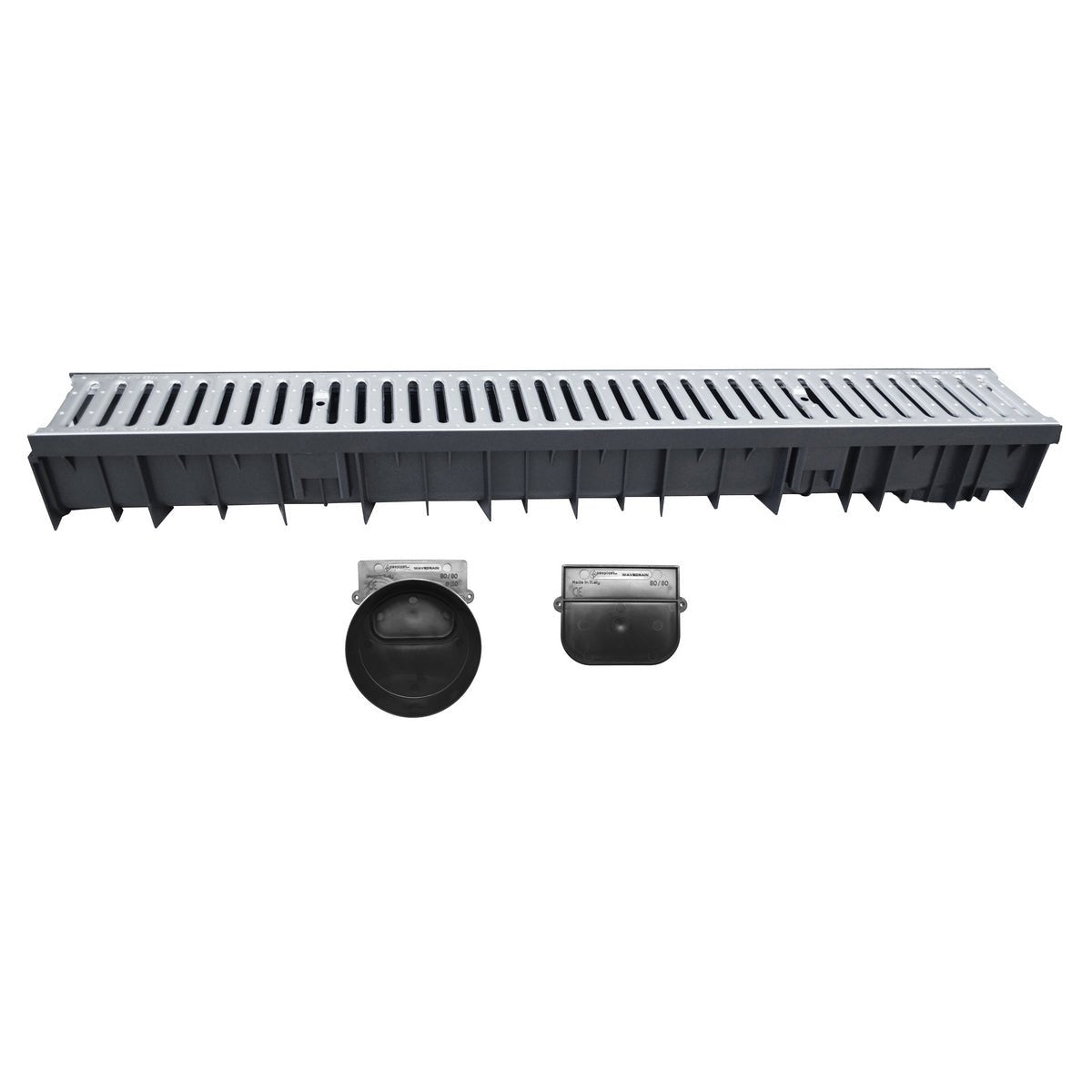 Canal Wavedrain avec grille en acier galvanisé. Tête aveugle. Tête de drainage D.110 mm Longueur 1000 mm - Hauteur 110 mm - Profondeur 120 mm.
