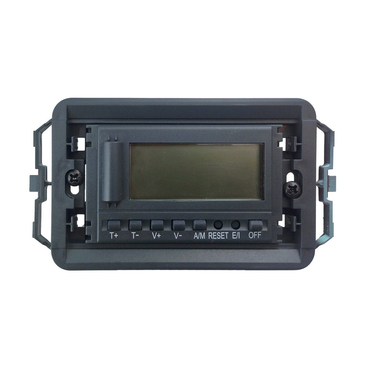Fonctions : marche/arrêt, réglage température, chauffage/refroidissement manuel ou auto, 3 vitesses, écran LCD, commande on/off. Installation murale, alimentation 230 V, compatible avec séries Bticino, Gewiss, Vimar.