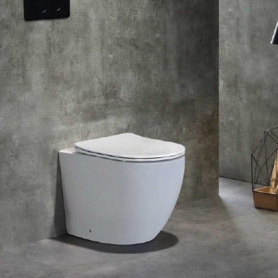 Toilettes murales série Vortexia avec évacuation tornado en céramique blanche. Fixations latérales incluses. Évacuation universelle, équipée d'un réducteur de débit. Courbe technique non incluse. Siège de WC non inclus