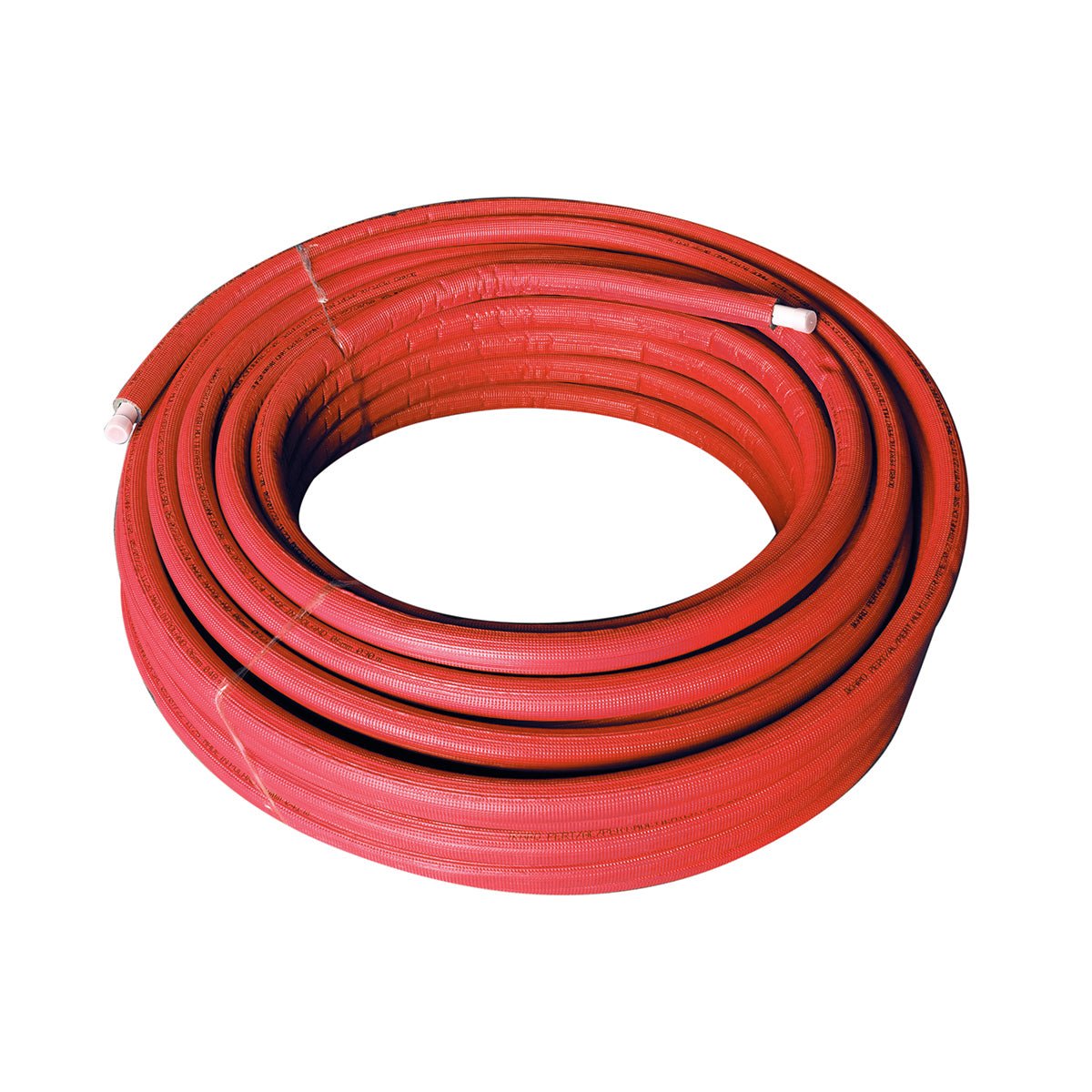 Matériau : PERT / AL / PERT. ISO 21003 - Pmax. 10 bar. T. max 95°C. Applications : pour installations hydrauliques et thermiques dans les secteurs résidentiel, industriel et tertiaire. Revêtement en polyéthylène : mousse de polyéthylène à cellules fermées et film en polyéthylène PE-LD.