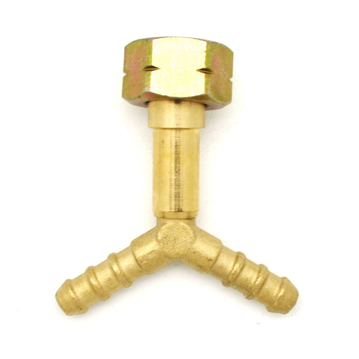 Croix 3 voies avec écrou CH 25 et deux sorties porte-tuyau D. 10.