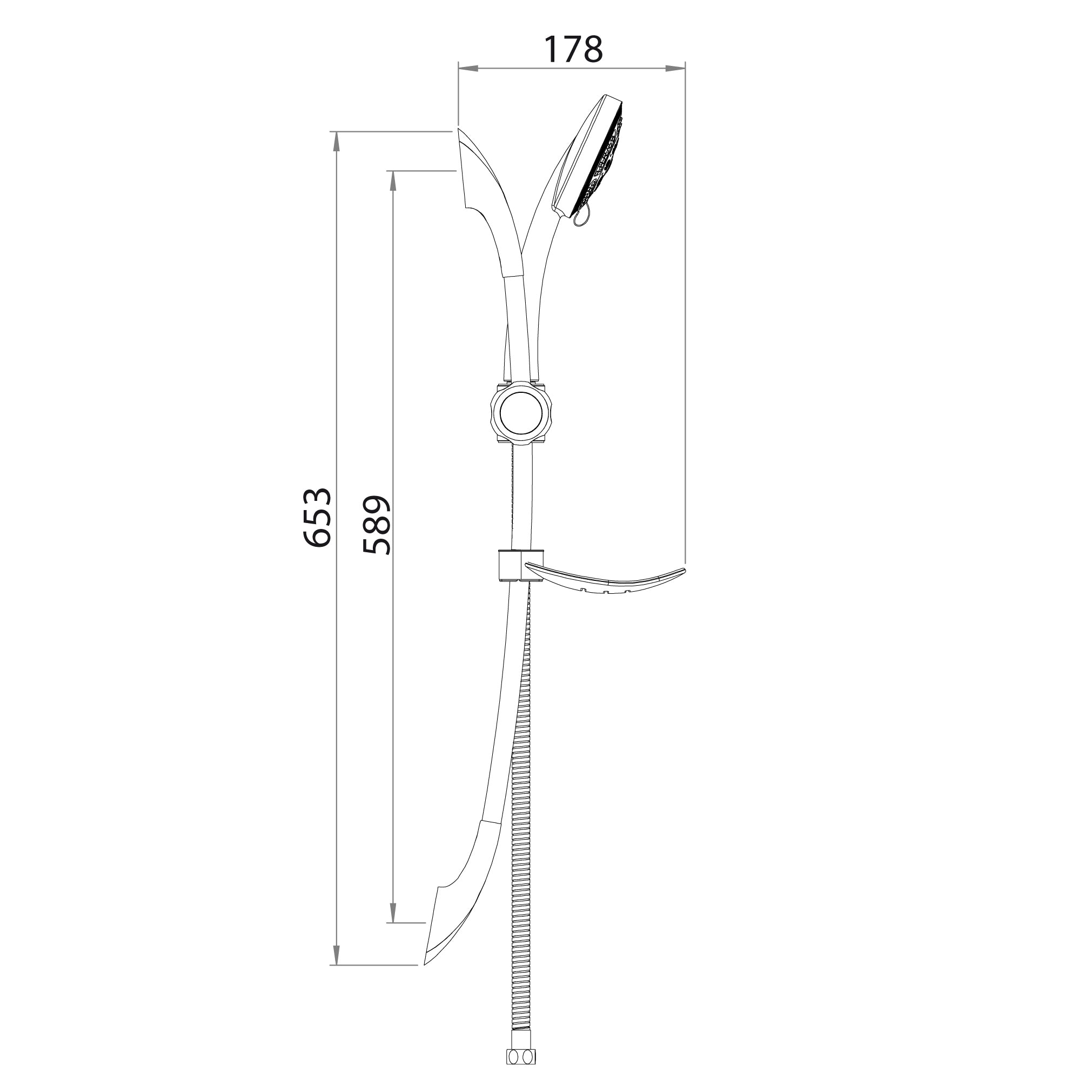 Ensemble de douche coulissant composé de : Barre de 65 cm de diamètre 32 ; Flexible anti-torsion de 1,50 cm ; Douchette à 5 jets ; porte-savon ; avec emballage en boîte.