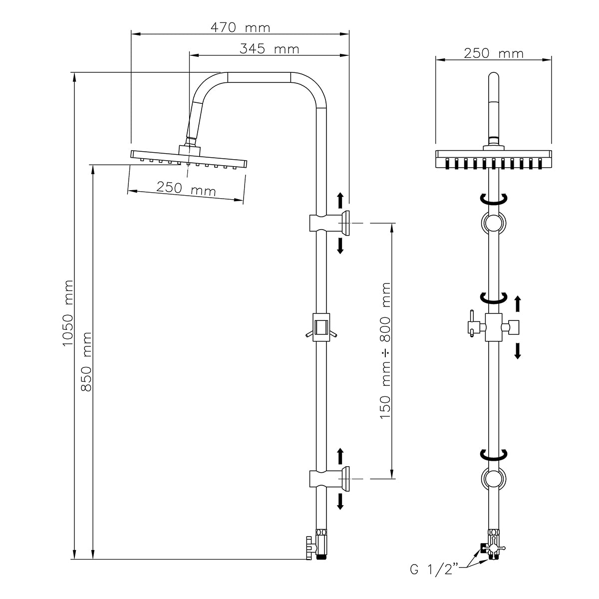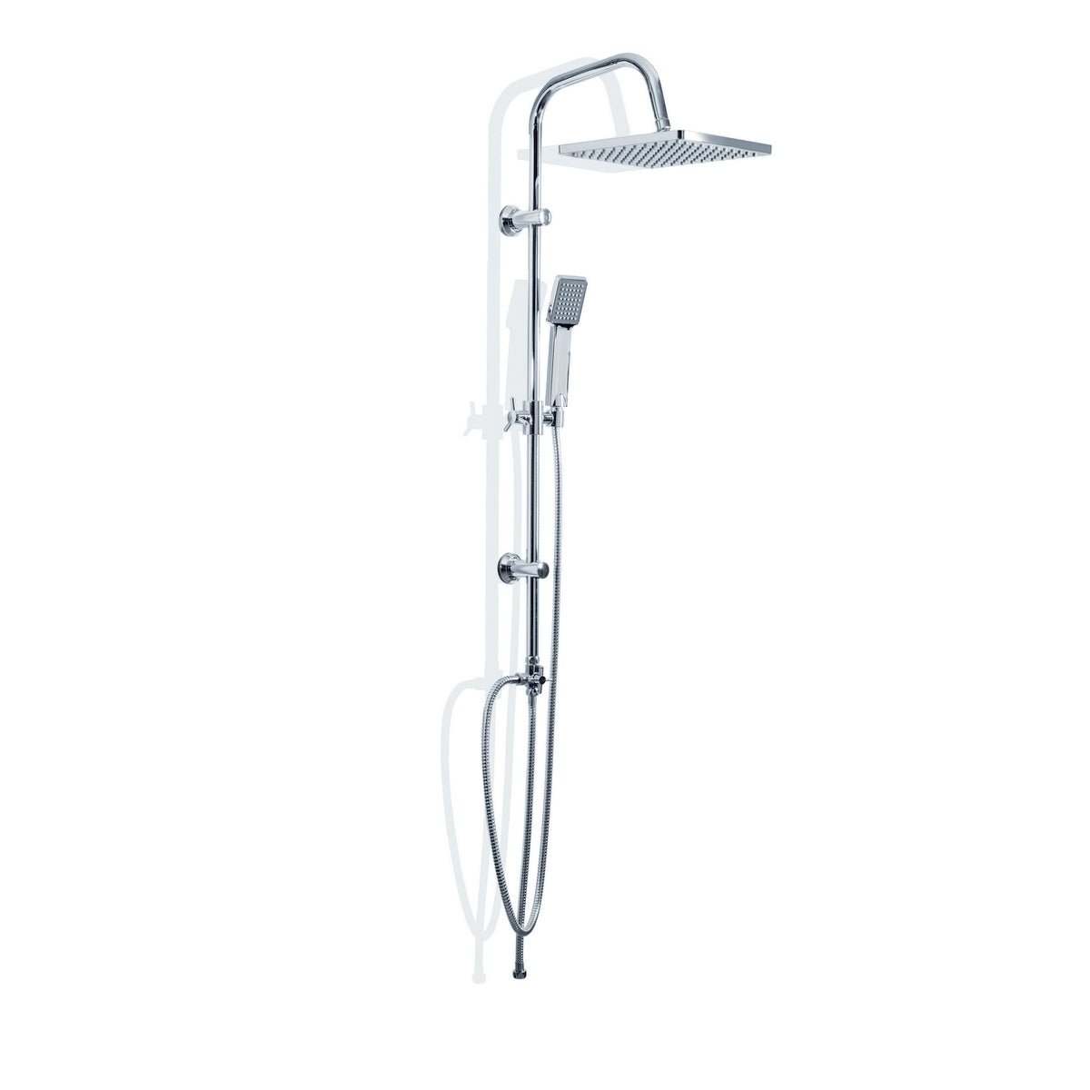 Pommeau de douche à jet unique anticalcaire; Pomme de douche anticalcaire Diam. 25 cm orientable; Flexible à double agrafage; Barre réglable en acier chromé 25-85 cm.