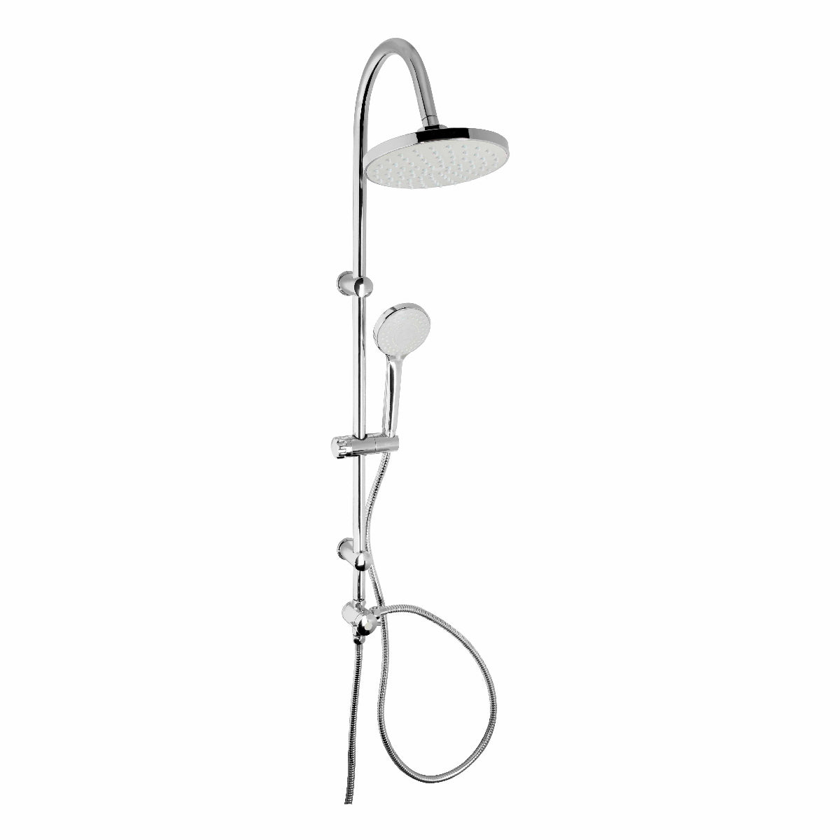 Douchette avec picots anticalcaires diamètre 10 + Pommeau de douche diamètre 19,8 cm; barre réglable en hauteur. Hauteur coulissante 97,5 cm.