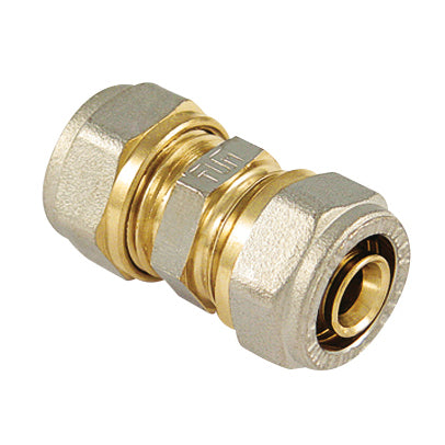 SÉRIE 1600INS. Raccord à compression avec adaptateur pour tube multicouche "AL-COBRAPEX". Raccord WATERBLOCK. Jaune nickelé avec adaptateur.