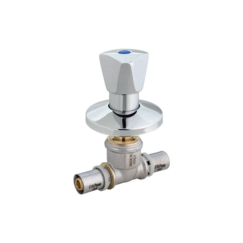 Vanne sous crépi complète avec volant et rosace, chromé. GP2600 FIVPRESS. Corps UNI EN 12165 CW617N - DW / Corps UNI EN 12164 CW617N - DW. Joint et étanchéité en EPDM. Température maximale de fonctionnement 95 °C. Pression maximale de fonctionnement à 95°C : 6 bar.