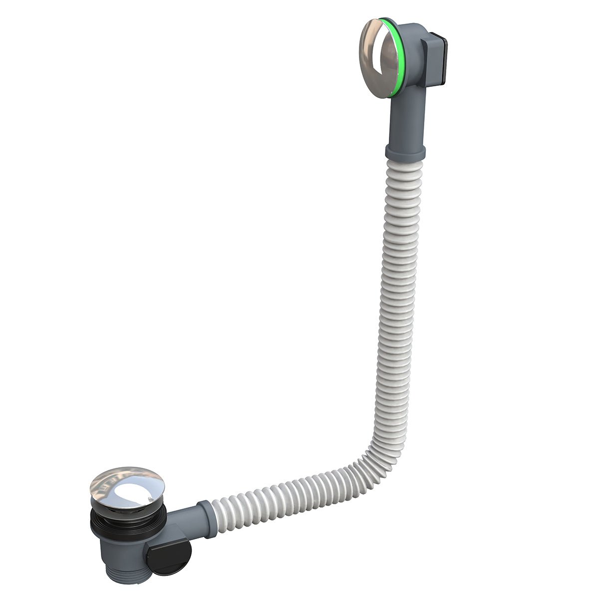 Couverture de trop-plein et bouchon en laiton chromé. Colonne de baignoire "Extreme" avec mécanisme à déclenchement. Évacuation 1"1/2, trop-plein flexible soudé. Matériau : polypropylène PP + laiton. Couleur : blanc + chromé. Application : pour baignoire.