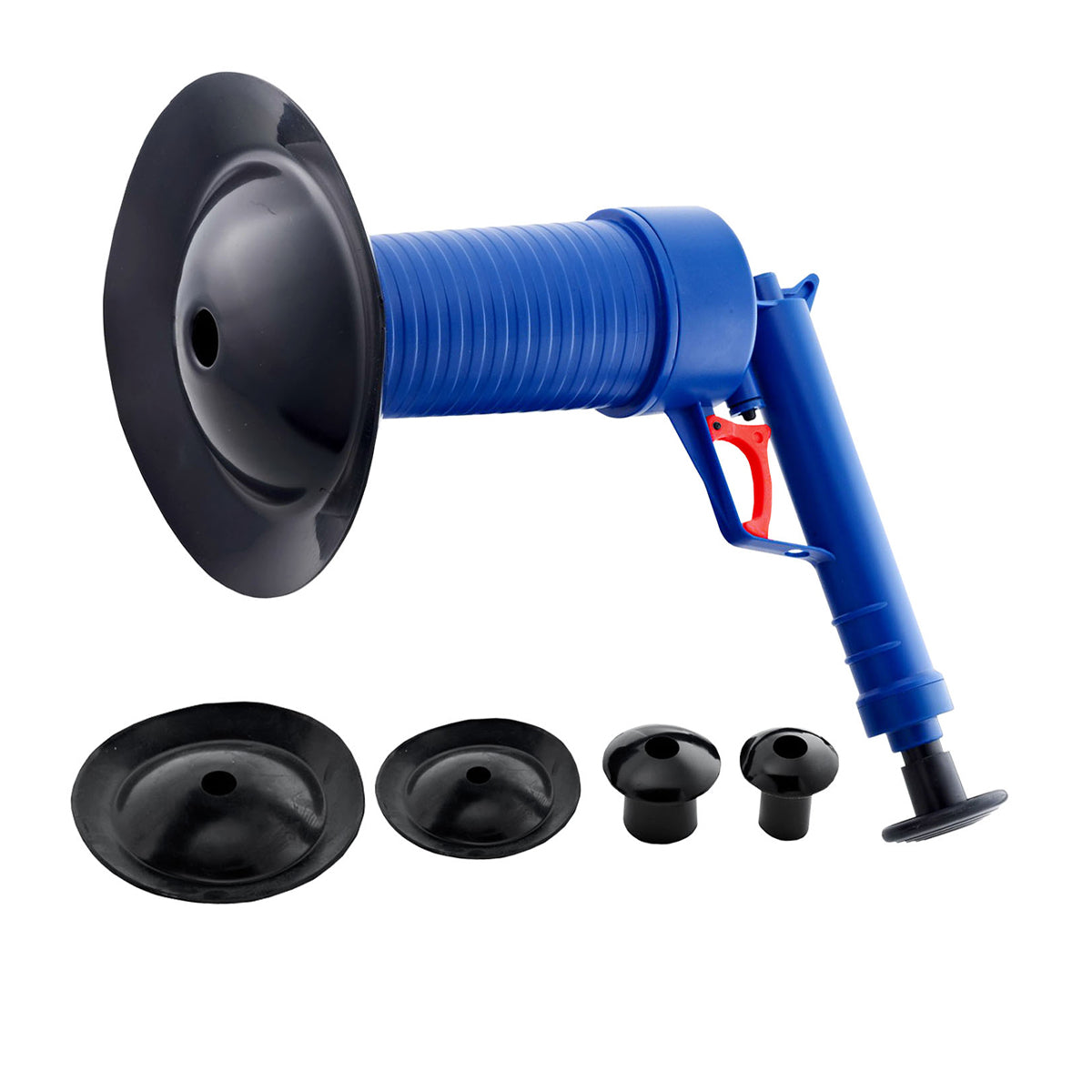 Déboucheur à air comprimé avec corps en pistolet en ABS et tête en caoutchouc de haute qualité. Le réservoir d'air haute pression est renforcé et équipé d'une vanne de sécurité. 4 adaptateurs permettent de travailler sur différentes tailles. 280x275 mm. 4 adaptateurs permettent de travailler sur différentes tailles : 2 inserts pour évacuations de lavabos 25-50 mm / 35-65 mm, 1 insert pour WC 205 mm, 1 insert pour évacuations de baignoire 115 mm