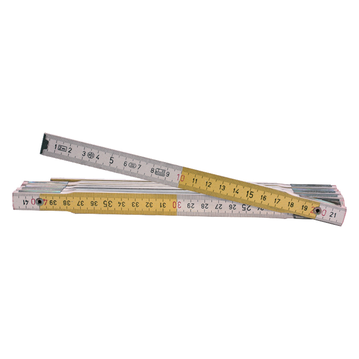 En bois de charme verni, avec rivet. Résistant à l'humidité, articulations avec ressorts en acier et axe riveté. 10 lattes couleur : blanc-jaune