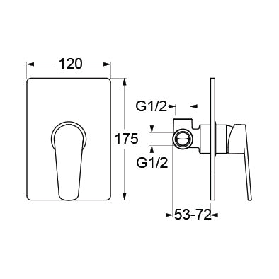 Mitigeur monocommande pour douche encastrée. Rosace 120x175 en métal. Cartouche céramique, débit 12 l/min. Comprend la partie encastrée