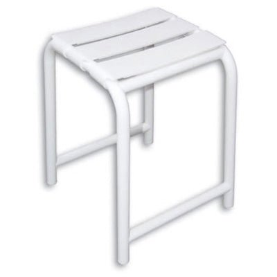 Normative di riferimento: D.M. 236/89 E D.P.R. 503/96. Seduta cm 35x28. Lo sgabello può sostenere carichi di 150 kg se correttamente utilizzato. Doghe in Nylon e telaio in acciaio.