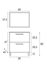 Mobile bagno sottolavabo ATHENA in materiale melaminico composto da: base 2 cassetti, con piedini + specchio (cm 80x57,5). Cassetto superiore con vano sifone. Da completare con lavabo nostro articolo 142-FA30-080. Maniglie e piedini nero opaco. Mobile da montare.