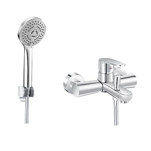 Miscelatore monocomando esterno per vasca con deviatore e cartuccia diam. 35 mm. Completo di doccetta, flessibile e supporto doccetta in finitura cromata per l'art. 234-L130-CR, in finitura nero opaco per gli art. 234-L130-NE e 234-L130-NS.