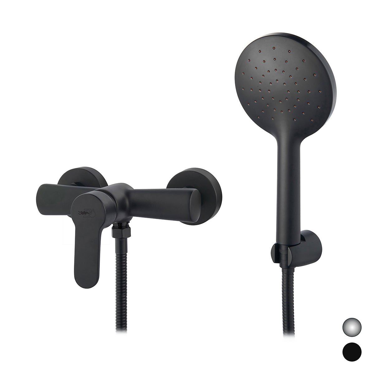 Miscelatore monocomando esterno doccia, cartuccia mm 35, completo di doccetta, supporto doccetta e flessibile doccia.