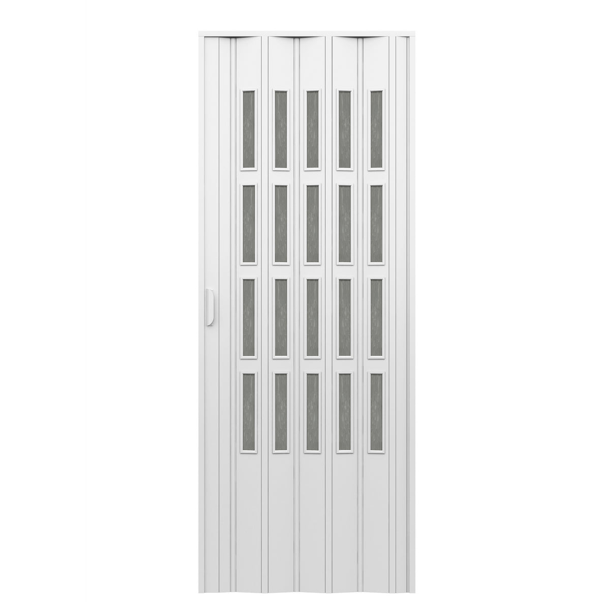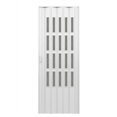 Porta a soffietto vetrata (vetrini in materiale plastico). Ideale soluzione per separare spazi della quotidianità e dell'ambiente lavorativo. Altezza cm 214.