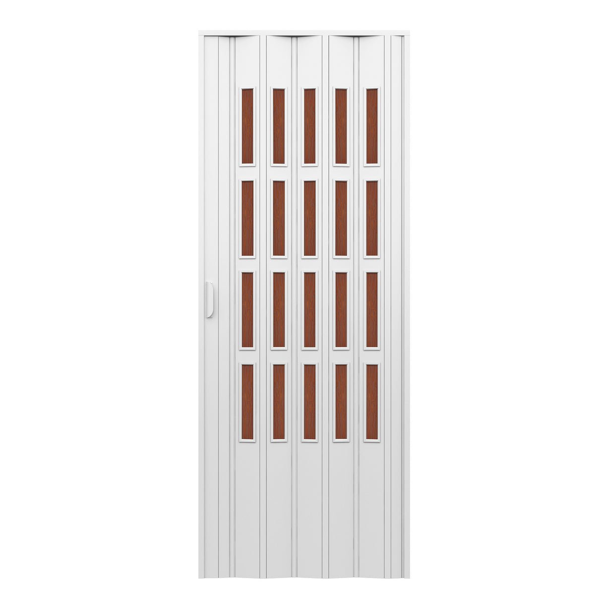Porta a soffietto vetrata (vetrini in materiale plastico). Ideale soluzione per separare spazi della quotidianità e dell'ambiente lavorativo. Altezza cm 214.