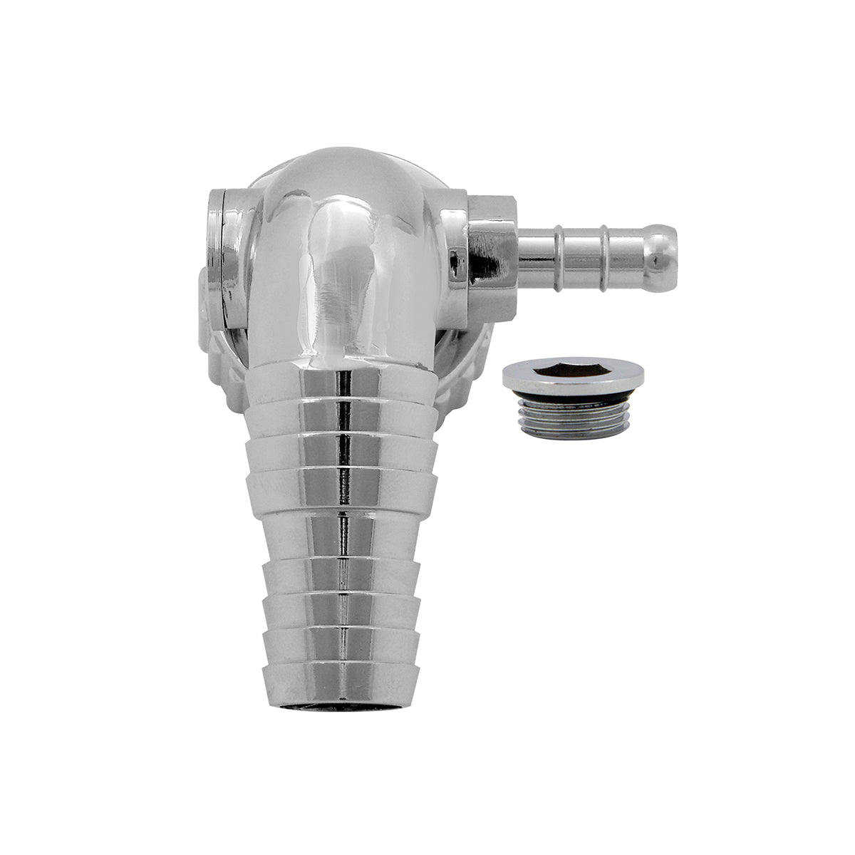 In ottone cromato. Con tappo supplementare chiave a brugola da 8mm. Portagomma reversibile DX/SX D. 8 mm