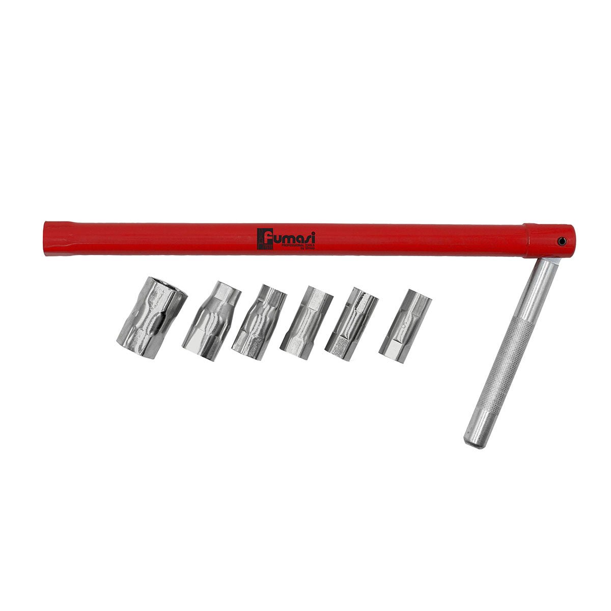 Chiave montaggio rubinetti in acciaio stampato con braccio cavo per evitare interferenza delle aste filettate. Ingombro ridotto per accedere ai dadi difficilmente accessibili. Adattabile alla maggior parte dei rubinetti